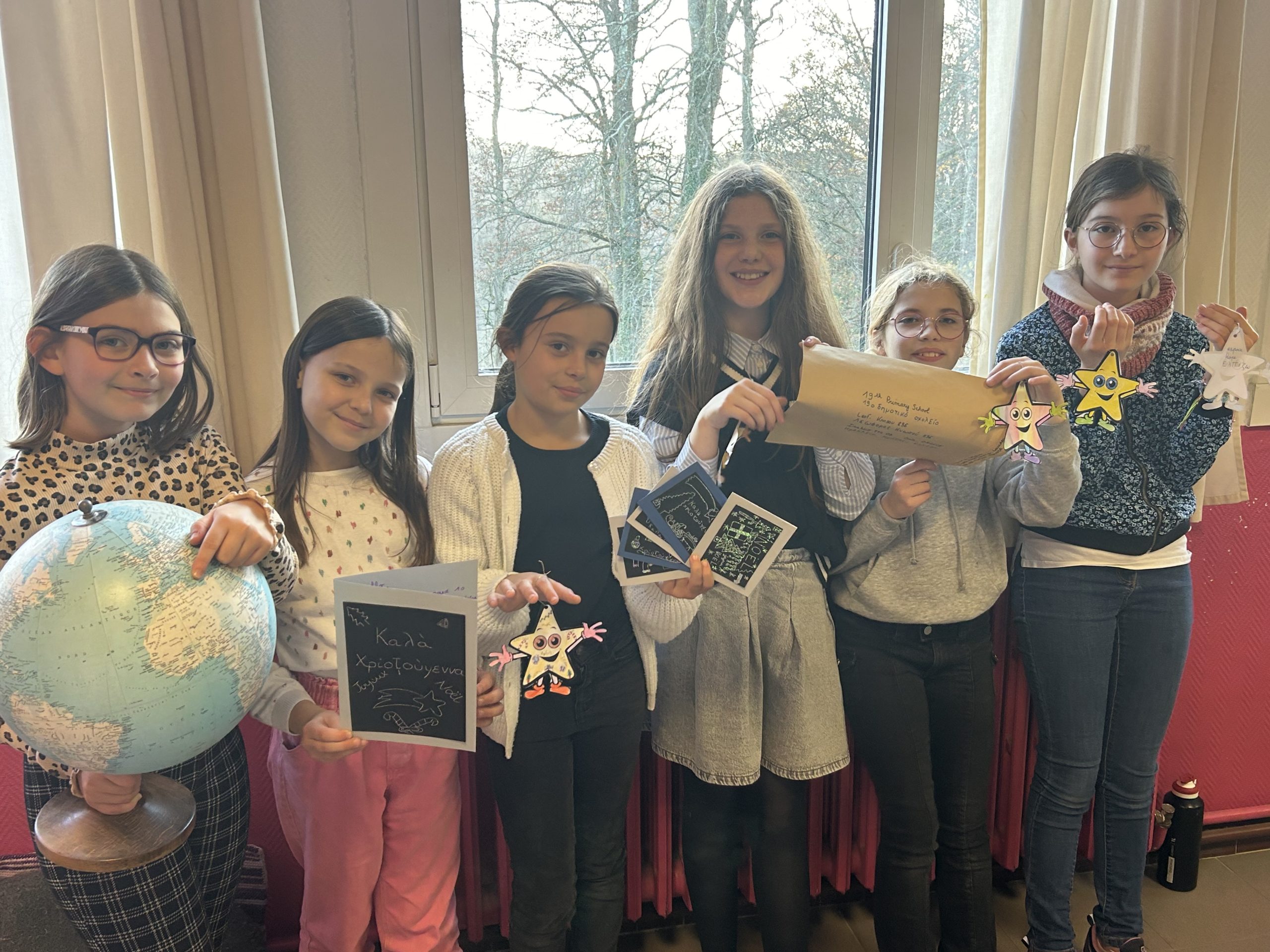 Nous avons le privilège de faire partie du consortium Erasmus + de la DDEC 29. A ce titre les CM2 ont entamé une correspondance avec les élèves de la 19ème école de Héraklion. Des cartes pour souhaiter un joyeux Noël aux copains grecs sont parties. Ce projet est une réelle source de motivation pour travailler la langue anglaise. Les élèves ont même développé d’eux même une curiosité pour l’écriture et la langue grecque.